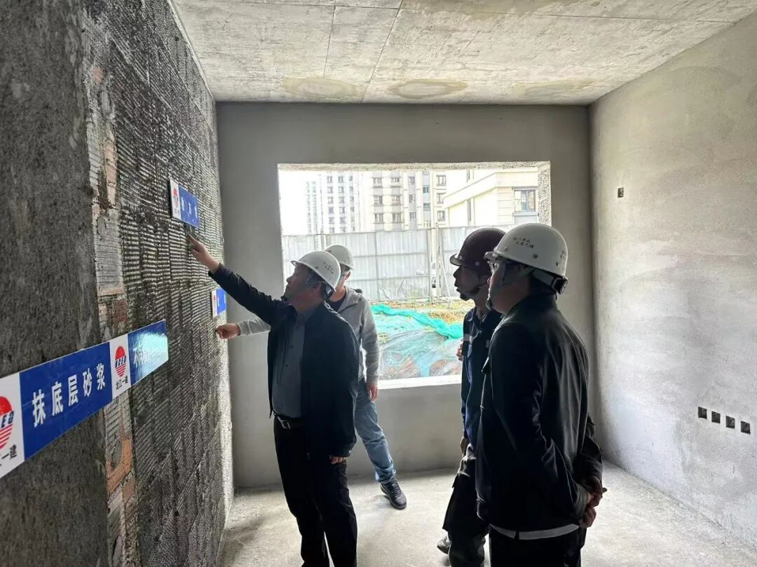 在視察砌筑及抹灰工程時,林寶臣對細部節(jié)點做法進行專業(yè)指導。他指出,要樹立行業(yè)標桿意識,通過技術(shù)創(chuàng)新與管理升級雙輪驅(qū)動,將每個構(gòu)造節(jié)點打造為可觀摩、可推廣的工藝樣板。要求工程團隊深植精益建造理念,以毫米級精度標準夯實建筑筋骨,在墻體垂直度、平整度等關鍵指標上形成可視化驗收體系,為后續(xù)工序提供優(yōu)質(zhì)基面,彰顯國企建造的品質(zhì)擔當。